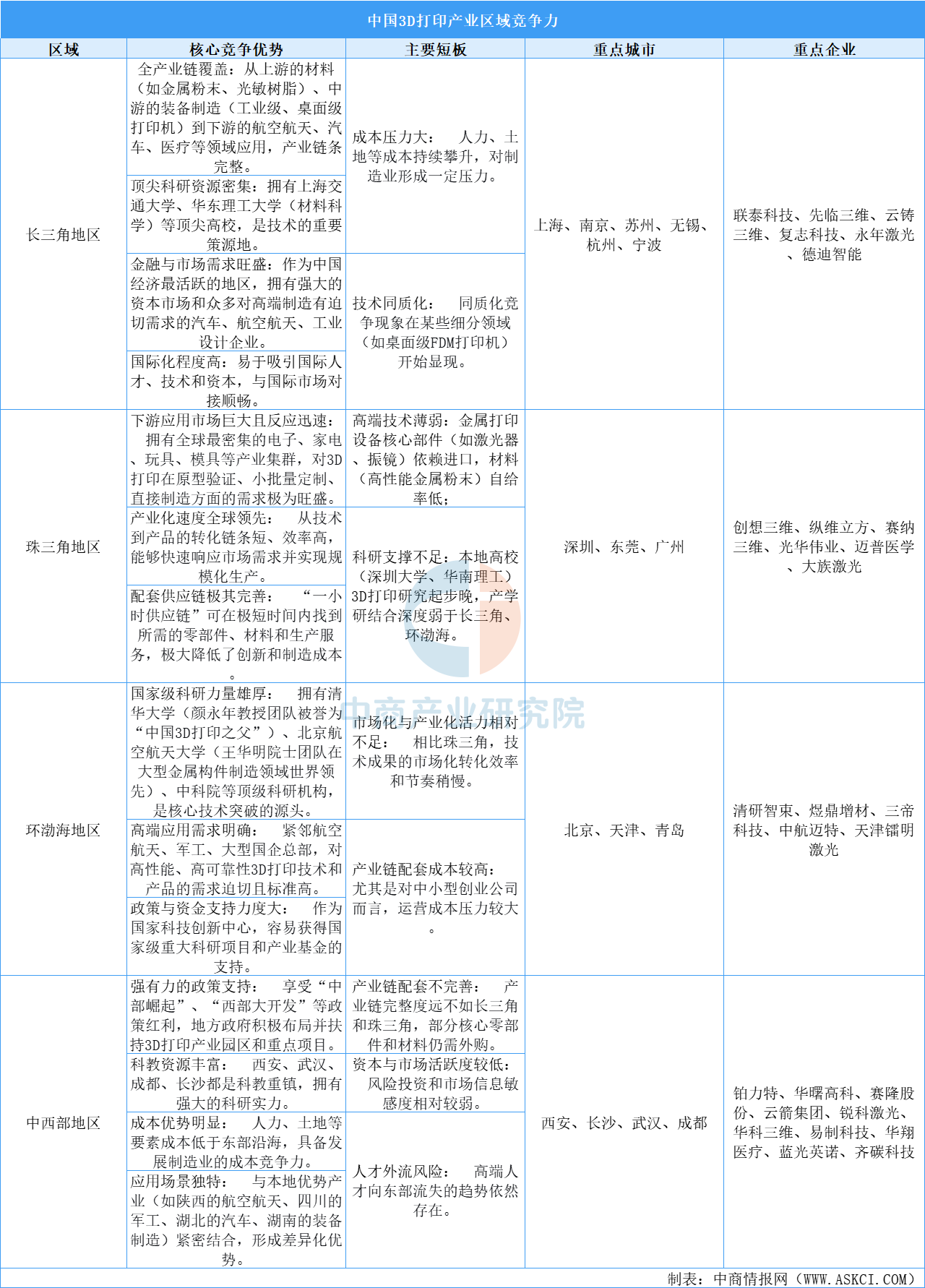 关键词: 3D打印 长三角地区 珠三角地区 环渤海地区 中西部地区